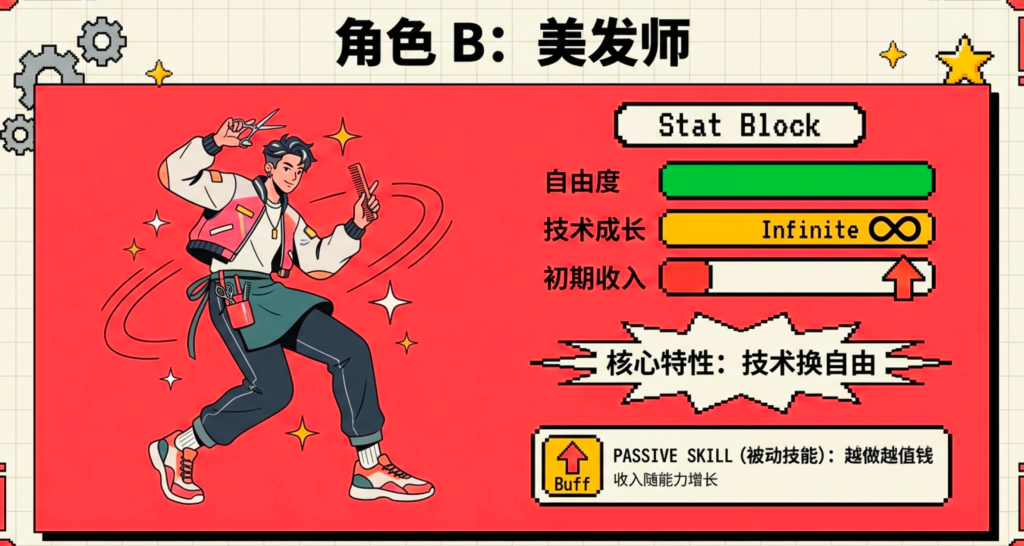 相比之下,美发师是一条技术型、实战型、以个人能力为核心的职业道路。